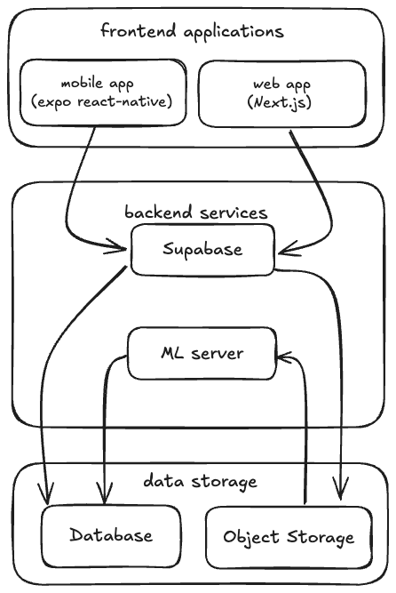 Supabase, an open-source alternative to Firebase, provides a suite of backend services for building applications. In the mobile app, it serves as a managed backend platform handling:
