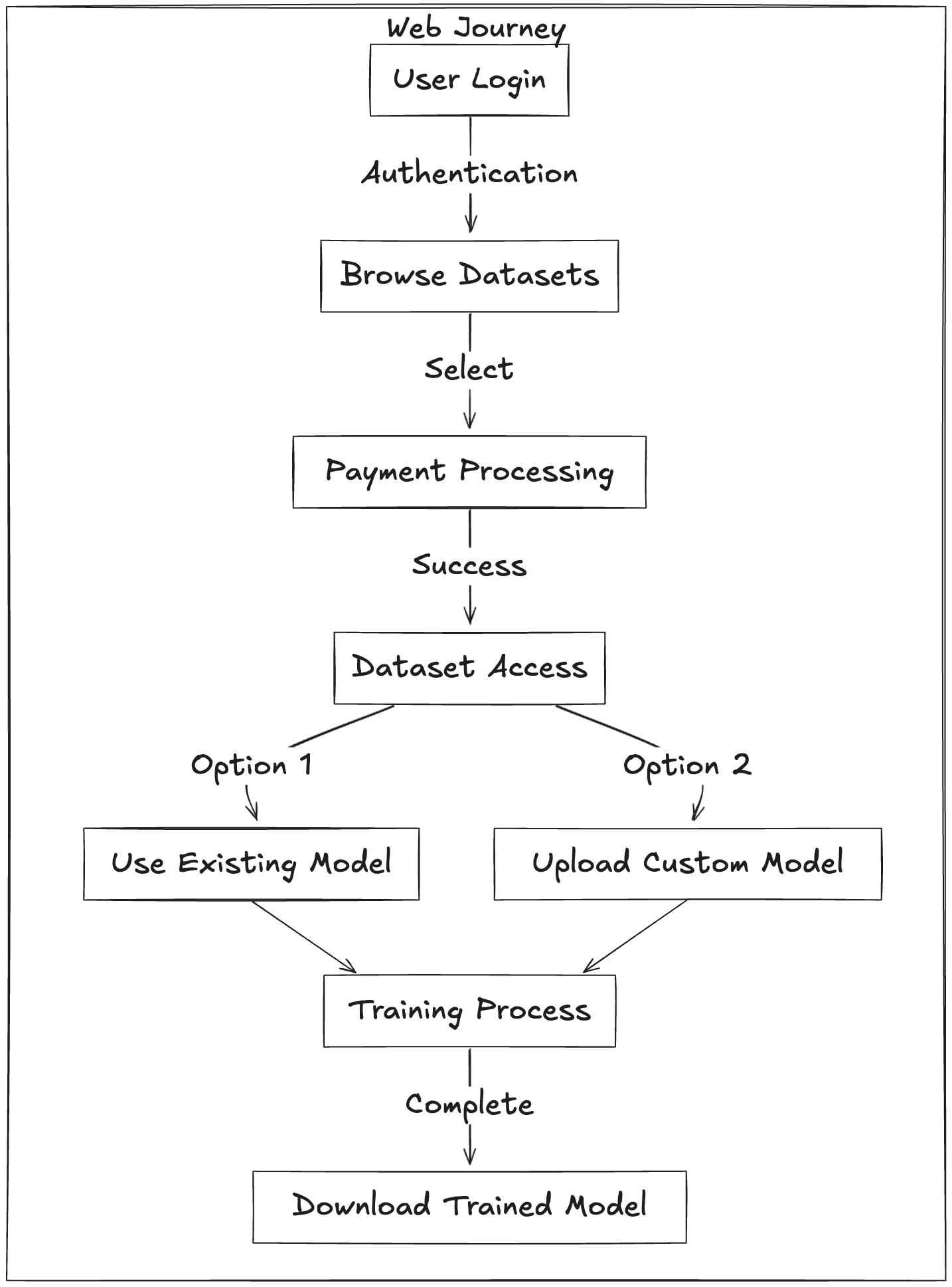 Payment Processing: If the user selects a dataset they want to access, they proceed to the payment processing step. Once the payment is successfully completed, the user gains access to the dataset.